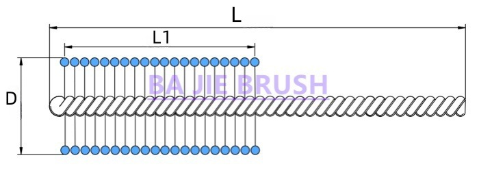 رقم القطعة | د(مم) قطر الفرشاة | ل1(مم) قطر العمل | قطر الساق (مم) | ل(مم) الطول الإجمالي |