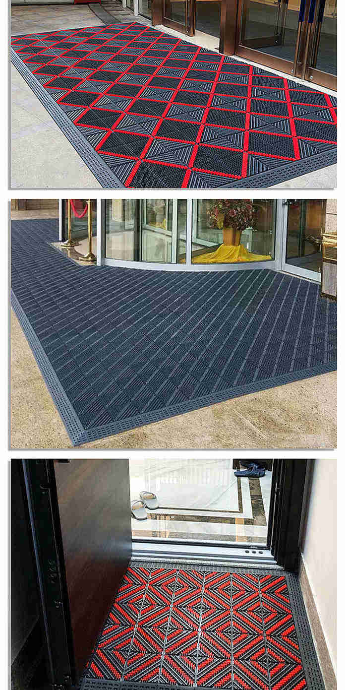 سجادة باب 3 في 1 بفرشاة شعيرات، تُعرف أيضًا باسم سجادات مدخل الفرشاة، مصنوعة من شعيرات النايلون والمطاط. تُوضع أمام الباب للاستخدام الشاق.