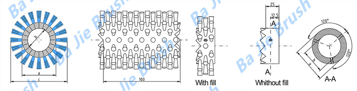 تُعرف هذه الفرشاة أيضًا باسم فرشاة الأسطوانة المقطعية, فرشاة مقطعية معيارية، أو فرشاة أسطوانية معياريةتم تصميم هذا النظام من الفرشاة بهيكل معياري، وهو يوفر حلاً ذكيًا للمواقف التي تتطلب فرش الأسطوانة الطويلة مطلوبة ولكن استبدال سهل وسريع من الضروري إزالة الأجزاء البالية.